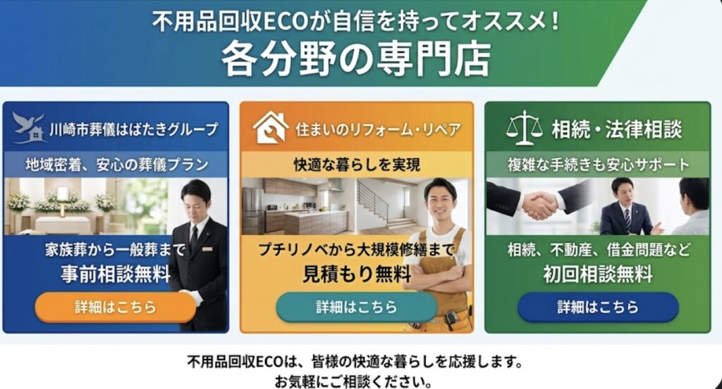 不用品回収にお困りのお客様へお役立ちになる情報を随時更新していきます。家具の処分の仕方がわからない。家電の処分に困っている。重量物の廃棄に困った場合どこに頼んでいいのかわからない。不用品回収の業者に依頼しても解決できなくて困っていた等など、はじめての不用品回収でお困りのお客様にお役立ちになる情報を提供していきます。