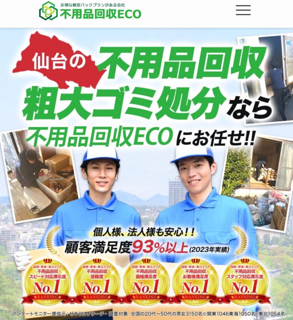 仙台市内で実績のある「弊社」「不用品回収ECO」にお任せください、無料見積もりも行っています。